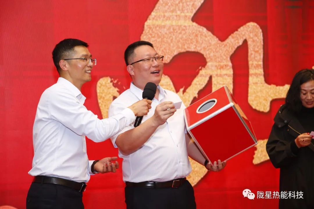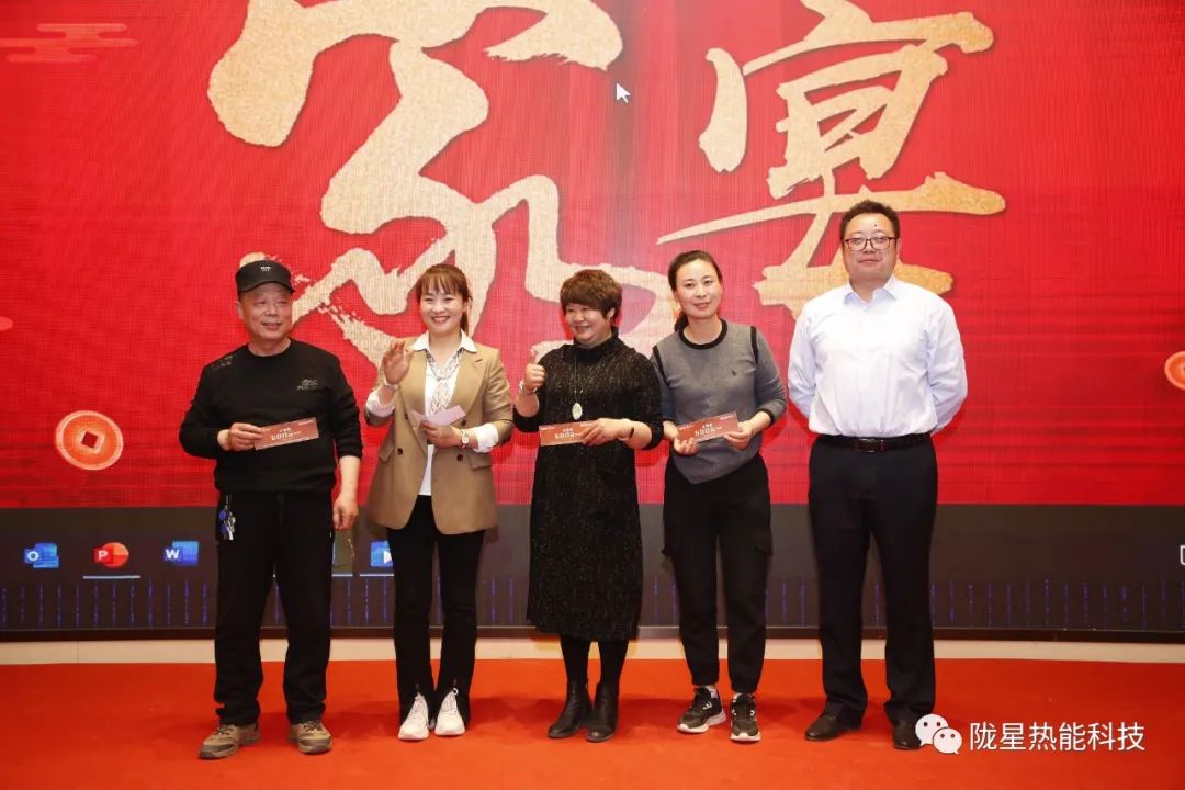 隴星集團(tuán)董事長(zhǎng)吳愛華女士、總經(jīng)理吳茂原先生出席了此次盛會(huì)。出席會(huì)議的還有隴星集團(tuán)副總、隴星熱能科技公司總經(jīng)理趙明珠先生,集團(tuán)副總黃巖先生,集團(tuán)副總、隴星熱能科技公司工廠廠長(zhǎng)李克林先生等集團(tuán)領(lǐng)導(dǎo)及公司領(lǐng)導(dǎo),會(huì)議現(xiàn)場(chǎng)200余人,共襄盛會(huì)。會(huì)議由公司副總經(jīng)理、銷售公司總經(jīng)理劉靜先生負(fù)責(zé)主持。