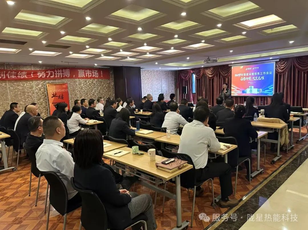 隴星集團總經(jīng)理、隴星熱能科技公司董事長吳茂原先生,集團副總、隴星熱能科技公司總經(jīng)理趙明珠先生,集團副總吳茂瓏先生,集團副總黃巖先生,以及集團財務(wù)部、熱能工廠領(lǐng)導(dǎo)和銷售中心各部門負責(zé)人及員工60余人齊聚一堂,共商2025年隴星采暖銷售策略及措施辦法,并組織了關(guān)于制度、政策、產(chǎn)品等方面的學(xué)習(xí)培訓(xùn),為2025年的銷售賦能。