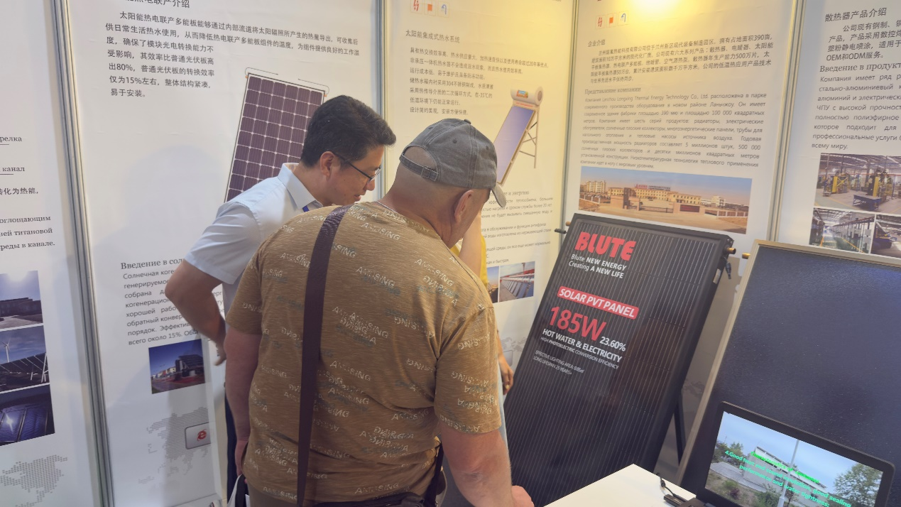 隴星“黑科技”產品——太陽能熱電聯產PVT光伏組件成為展會高人氣產品,吸引客戶關注。