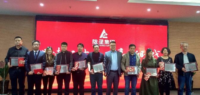 集團總經理吳茂原、副總經理趙明珠、銷售總經理李軍、管理部部長胡濤、財務部長彭宏娟等集團領導分別為銷售業(yè)績突出的41家經銷商頒發(fā)了“2017年度區(qū)域銷售金獎”、 “2017年度區(qū)域銷售精英獎”、“2017年度區(qū)域銷售優(yōu)秀獎”,對他們團結拼搏,積極進取、鍥而不舍的精神予以獎勵。臺上群英薈萃,臺下掌聲雷動,他們就是隴星人的的熠熠星光。